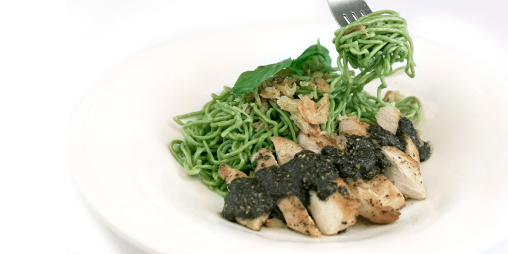 ส่วนผสม1. เบซิลสด 1 ถ้วย2. น้ำมันมะกอก 1/2-1ถ้วยตวง3. น้ำลวกเบซิล 1/2 ถ้วยตวง4. พริกขี้หนู 2-4 เม็ด5. กระเทียม 2-4 เม็ด6. ไพน์นัท+เม็ดมะม่วงคั่ว 1/2 ถ้วยตวง7. พาร์เมซาน 1/2 ถ้วยตวง8. เกลือตามชอบ9. สไปรูลิน่า 20 กรัม