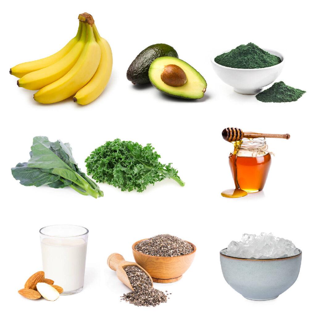 ผักและผลไม้สีเขียวนั้นดีต่อสุขภาพมาก เพราะมีทั้งคลอโรฟิลล์ (Chlorophyll), ลูทีน (Lutein) และซีแซนทีน (Zeaxanthin) ฯลฯ และยังมีไฟเบอร์สูง จึงช่วยในเรื่องระบบขับถ่าย ลดอาการท้องผูก นอกจากนั้นก็ยังมีสารอาหารอื่น ๆ ที่ช่วยบำรุงสุขภาพขั้นเทพ เช่น สารช่วยต้านอนุมูลอิสระ ยับยั้งการเกิดริ้วรอย ช่วยลดความเสื่อมของจอประสาทตา ช่วยป้องกันโรคมะเร็ง บำรุงหัวใจและป้องกันการเกิดโรคหัวใจ กระตุ้นระบบภูมิคุ้มกันให้แก่ร่างกาย เป็นต้น ซึ่งการนำผักสีเขียวอย่างคะน้า ผลไม้สีเขียวอย่างอะโวคาโด และพืชสีเขียวอย่างสาหร่ายเกลียวทองมาเป็นส่วนผสมในสมูทตี้นี้ เรียกว่าดับเบิ้ลเมนูสีเขียว ๆ เพื่อสุขภาพเป็นพิเศษ แล้วยิ่งเติมเมล็ดเจียเข้าไปเป็นส่วนประกอบของเมนูสมูทตี้สีเขียว ๆ นี้ด้วยแล้ว ยิ่งทำให้ได้ทั้ง “เส้นใยอาหาร” และ “กรดไขมันโอเมก้า 3 ที่ดีต่อสุขภาพหัวใจมากยิ่งขึ้น” ทีนี้เรามาดูกันว่า คุณประโยชน์ที่ดีต่อสุขภาพอื่น ๆ ของแต่ละส่วนผสมในสมูทตี้แก้วนี้จะมีอะไรบ้าง